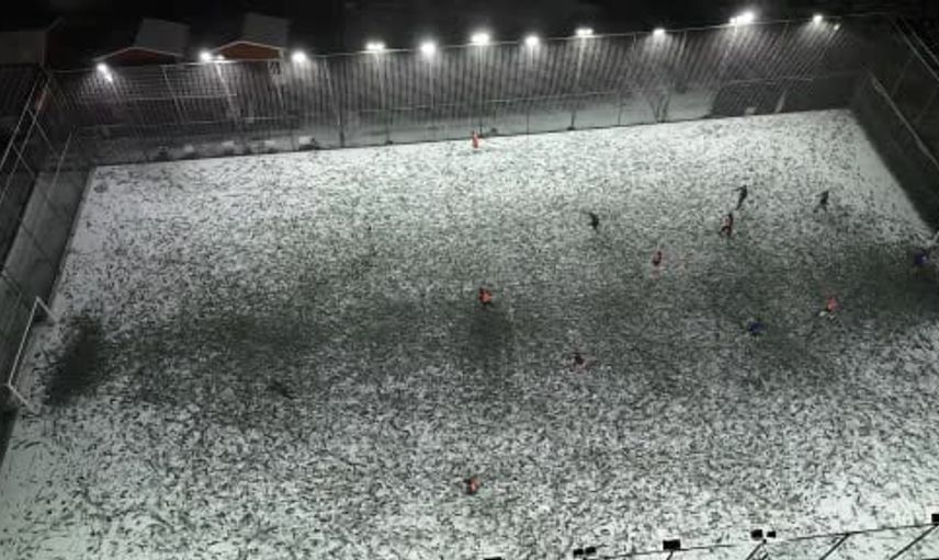 İstanbul'un Maltepe ilçesinde akşam saatlerinde başlayan yağmur, ilerleyen saatlerde kara dönüştü. Parklar, sokaklar ve çatıların beyaz örtüyle kaplandığı görüntülere rağmen bir grup halı saha tutkunu maçlarını yarıda bırakmadı.