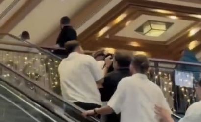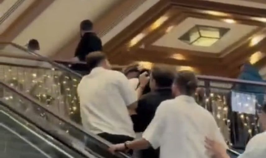 Olay anı, alışveriş merkezinde bulunan bir vatandaşın cep telefonu kamerasına yansıdı. Görüntülerde saldırganın yürüyen merdivenlerde çalışanlar tarafından götürülerek uzaklaştırıldığı ve taraflar arasında tekme-tokat kavgaya dair anlar yer aldı.