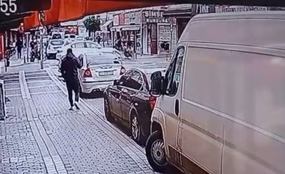 Kazanın gerçekleştiği an, cadde üzerindeki bir iş yerine ait güvenlik kamerası tarafından saniye saniyesine görüntülendi.
