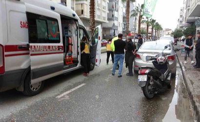 Manavgat'ta park halindeki otomobilin açılan kapısına çarpan motosiklette 2 yaralı