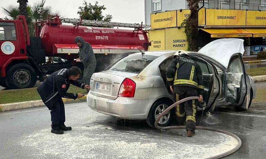 Manavgat’ta seyir halindeki otomobil alev aldı