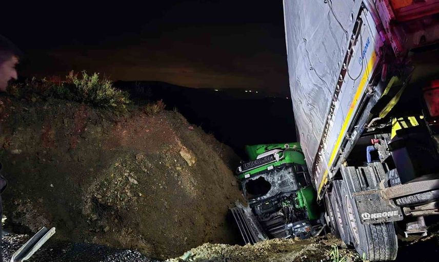 ANTALYA’NIN MANAVGAT İLÇESİNDE TÜNEL GİRİŞİNDE SÜRÜCÜSÜNÜN DİREKSİYON HAKİMİYETİNİ KAYBETTİĞİ TIR ŞARAMPOLE YUVARLANDI. ARAÇ İÇERİSİNDE SIKIŞAN VE AĞIR YARALANAN SÜRÜCÜ JANDARMA, İTFAİYE VE AFAD EKİPLERİNCE BULUNDUĞU YERDEN ÇIKARILARAK HASTANEYE KALDIRILDI.