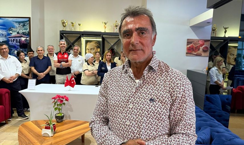 Antalyalı turizmci Hüseyin Aydoğan (önde), otellerinde sigara içmeyen veya sigarayı bırakan personeli arasında her ay kura çekilişi yaparak emekli maaşından biriktirdiği parayı ödül olarak dağıtıyor.