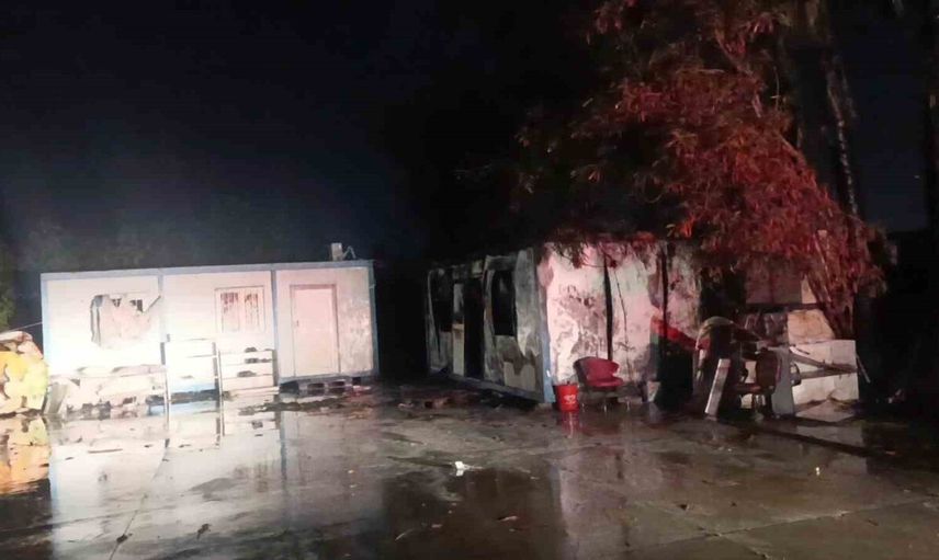 Yıldırımın palmiyeleri tutuşturmasıyla başlayan alevler kısa sürede yayılarak tesis personelinin kaldığı konteynerlerden birine sıçradı. Konteyner yoğun şekilde yanarak kullanılamaz hale geldi.