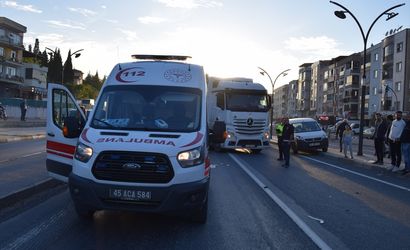 Manisa'nın Turgutlu ilçesinde kamyonun çarptığı genç ağır yaralandı.