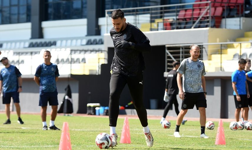 Trendyol 1. Lig'in 8. haftasında yarın Sipay Bodrum FK'yi konuk edecek Manisa FK, hazırlıklarını tamamladı. Antrenmanda Yassine Benrahou (ortada) yer aldı.