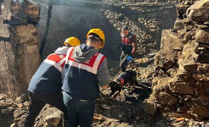 MANİSA'NIN GÖRDES İLÇESİNDE 5 EVİN KÜL OLDUĞU YANGIN NEDENİYLE HAYATINI KAYBEDEN KADININ CESEDİNE ULAŞILDI.