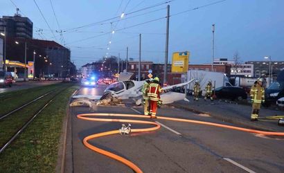 ALMANYA’DA CADDEYE ACİL İNİŞ YAPAN KÜÇÜK UÇAK TRAFİK LEVHASINA ÇARPTI: 3 YARALI