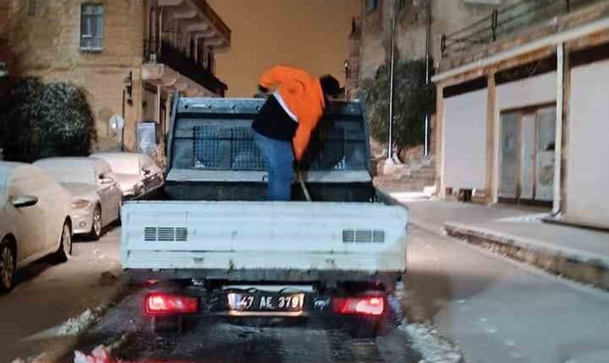 Mardin Büyükşehir Belediyesi ekipleri, gece yarısından sonra etkisini artıran kar yağışına karşı ana arterlerde küreme, tuzlama ve solüsyon uygulamaları gerçekleştirdi.