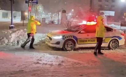 Sahadaki ekipler, trafik akışını kontrol ve güvenliği sağlama amaçlı denetimlerini sürdürürken bir anda çocuklarla karşılaştı. Çocukların polis ekiplerine kar topu atmasıyla birlikte, resmi ekip aracının etrafında toplanan grup arasında neşeli bir kar topu savaşı başladı.