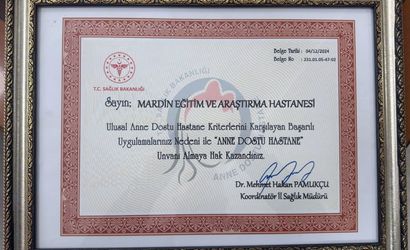 Mardin Eğitim ve Araştırma Hastanesi, anne ve bebek sağlığını önceliklendiren çalışma anlayışıyla yürütülen uygulamalar sonucu Anne Dostu Hastane unvanını sürdürmeye hak kazandı.