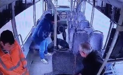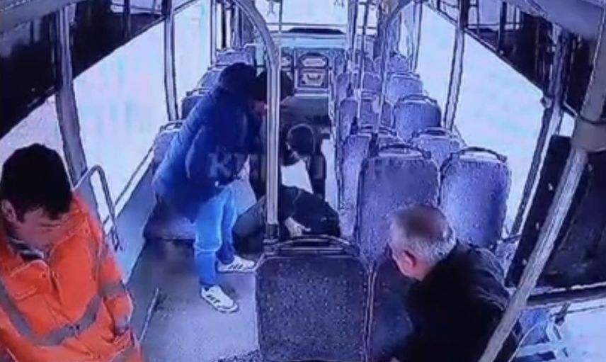 Oturduğu koltuktan yere düşen Yıldırım'ın yaşadığı anlar, otobüsteki güvenlik kamerasınca kaydedildi.