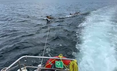 Marmara Denizi’nde feribot trafiği için tehlike oluşturan yüzen ağaç kıyıya çekildi