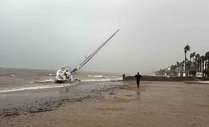 Muğla'nın Marmaris ilçesinde sabah saatlerinden itibaren etkisini artıran şiddetli fırtına ve sağanak, kıyı ve kara ulaşımında aksamalara yol açtı. Kemeraltı Mahallesi Halk Plajı önünde bulunan üç yelkenli tekne kuvvetli rüzgarın etkisiyle kıyıya sürüklenerek karaya oturdu.