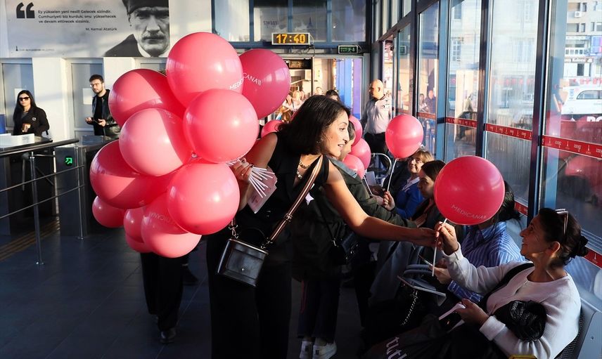 İZDENİZ iş birliği ile gerçekleştirilen etkinlikte, kadınlar vapura pembe balonlarla bindi. Etkinlik sırasında katılımcılara, meme kanserine karşı nasıl muayene olmaları gerektiğine dair broşürler dağıtıldı.
