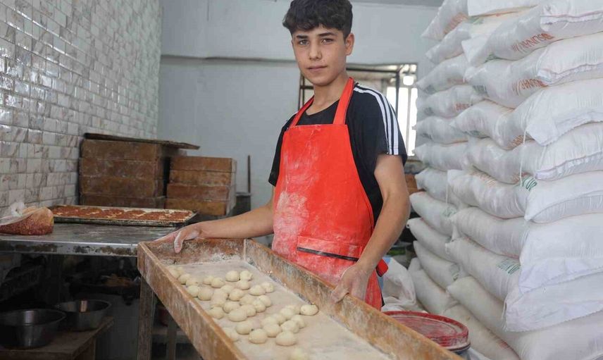 HATAY'DA YAŞAYAN 16 YAŞINDAKİ MEMİŞ AKÇAKAYA, YERLERİ SÜPÜREREK 10 YAŞINDA BAŞLADIĞI FIRIN USTALIĞINDA KENDİNİ GELİŞTİREREK HAMUR HAZIRLAMAYI, HAMUR AÇMAYI VE LAHMACUN YAPMAYI ÖĞRENDİ.