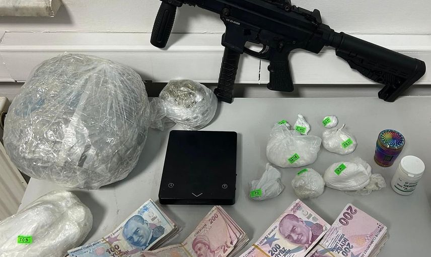 Operasyonda otomatik silah, çok sayıda uyuşturucu madde ve nakit para ele geçirildi