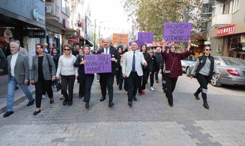 Menemen Kadın Danışma Merkezi önünden başlayan yürüyüşe çok sayıda kadın ve erkeğin yanı sıra Menemen Belediye Başkanı Aydın Pehlivan ve eşi Filiz Pehlivan de katıldı. Başkan Pehlivan ve eşi, üzerinde "Öldüren sevgi istemiyoruz." ile "Kadına şiddet, insanlığa ihanet" yazılı dövizleri taşıyarak etkinliğe destek verdi.
