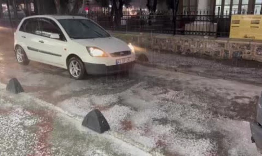 Yaklaşık beş dakika içinde etkisini artıran dolu, görüş mesafesini düşürdü ve yollarda doluyla kaplanma sonucu sürücülere zor anlar yaşattı.