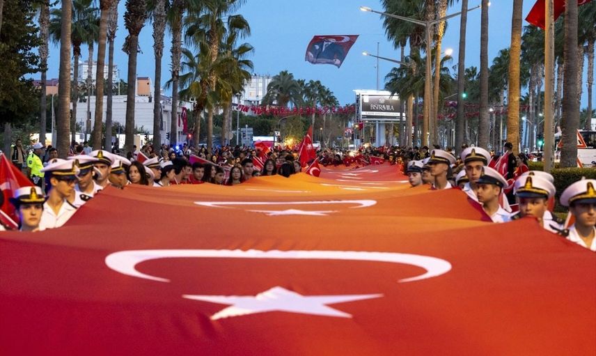 Mersin'de 29 Ekim Cumhuriyet Bayramı kutlamaları çerçevesinde, 102 metre uzunluğundaki Türk bayrağı ile görkemli bir yürüyüş düzenlendi. Etkinlik, Mersin Valiliği tarafından organize edildi.