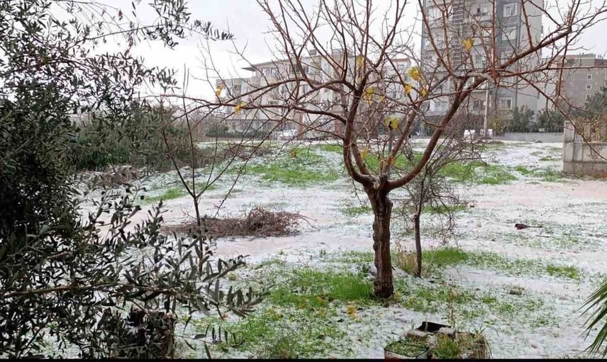 Meteoroloji Genel Müdürlüğü tarafından yapılan uyarının ardından Mersin’de akşam saatlerinde aniden başlayan dolu yağışı kent yaşamında aksamalara yol açtı. Kısa sürede yoğunlaşan yağış bazı mahallelerde beyaz örtü oluşturdu.