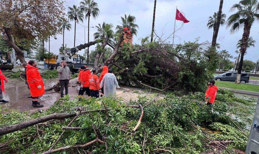 İhbar üzerine bölgeye sağlık ve itfaiye ekipleri sevk edildi. Ekiplerin devrilen ağacı kaldırma çalışmaları sürüyor.