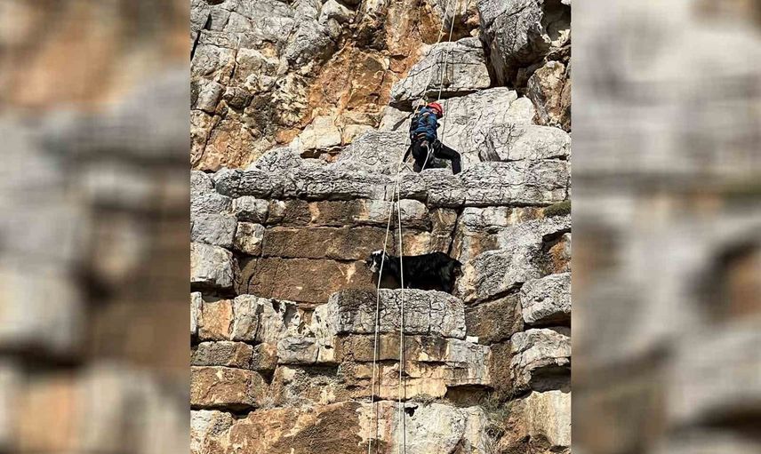 Mersin'de kayalıklarda mahsur kalan keçi başarılı bir operasyonla kurtarıldı