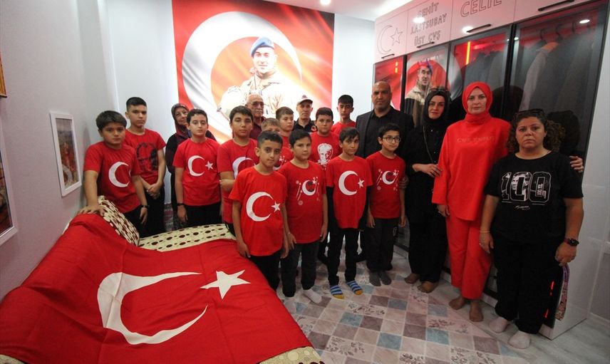 Etkinlikte öğrenciler, Celil Mutlu'nun babası Ali ve annesi Emine Mutlu'yu ziyaret ederek, şehidin hatıralarının bulunduğu odasını gezdi.