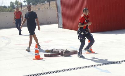 Mersin'de görev yapan kadın itfaiyeciler, olası afetlere hızlı ve etkin şekilde müdahalede bulunmak için zorlu parkurlarda hazırlık yapıyor.
