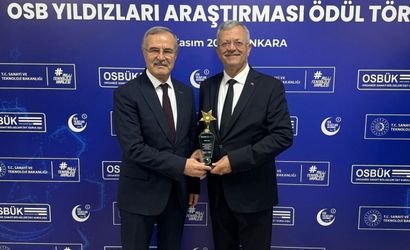 Organize Sanayi Bölgeleri Üst Kuruluşu (OSBÜK) tarafından düzenlenen beşinci OSB Yıldızları Araştırması Ödül Töreni Ankara'da gerçekleştirildi. Törende Mersin OSB, 'En çok katkı veren OSB' kategorisinde ödüle layık görüldü.