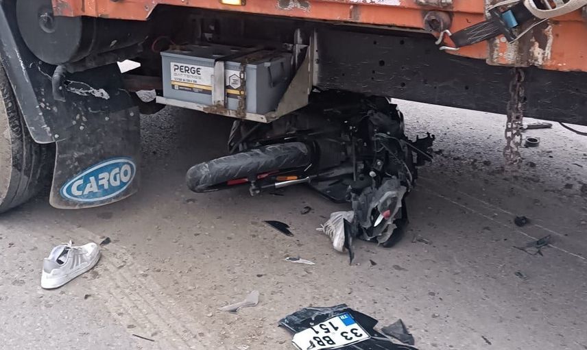Kaza sırasında, 33 BBP 151 plakalı motosikleti kullanan A.A. (24) ile kamyonu yöneten M.T. (63) çarpıştı. Çarpışmanın etkisiyle motosiklet kamyonun altına girerken sürücü yola savrularak ağır yaralandı.