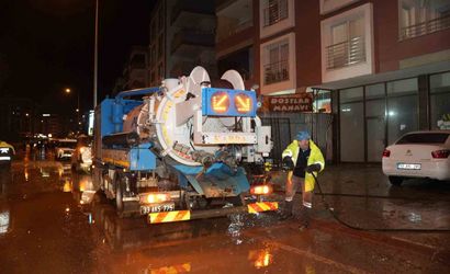 Ekiplerin hızlı ve koordineli çalışması sayesinde taşkın nedeniyle kapanan yol kısa sürede yeniden trafiğe açıldı. Ayrıca bir iş yerinin zemin katına giren yağmur suları, ekipler tarafından küreyerek tahliye edildi ve alan temizlendi.