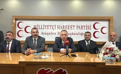 MHP Genel Başkan Yardımcısı İzzet Ulvi Yönter (ortada), partisinin Ümraniye ve Ataşehir ilçe başkanlıklarını ziyaret ederek, partililere seslendi.