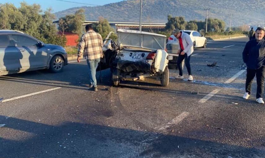 Milas’ta zincirleme trafik kazası: Tofaş araç büyük hasar gördü