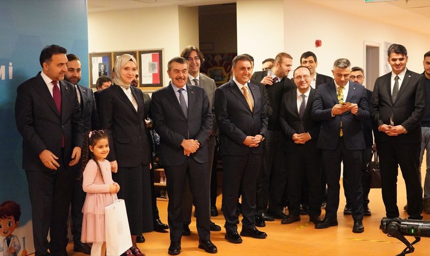 Bakan Tekin, okulda öğrencilerin oluşturduğu halk oyunu ekibi tarafından karşılandı. Çocukların sergilediği gösteriye, bir robot da eşlik ederek katılımcıları eğlendirdi.