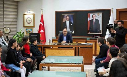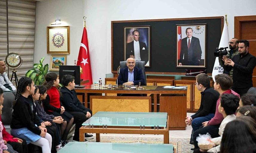 Minik sanatçılardan Başkan Sami Er'e teşekkür ziyareti