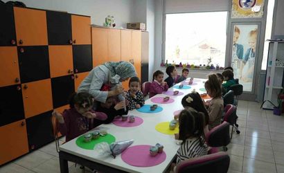 Ardından ritim atölyesine geçen çocuklar, çeşitli müzik aletlerini tanıdı ve öğretmenlerin eşliğinde ritim çalışmaları yaparak eğlenceli anlar yaşadı. Günün sonunda ise tasarım atölyesinde maskeler hazırlayan ve boyayan minikler, kendi eserleriyle hünerlerini sergiledi.