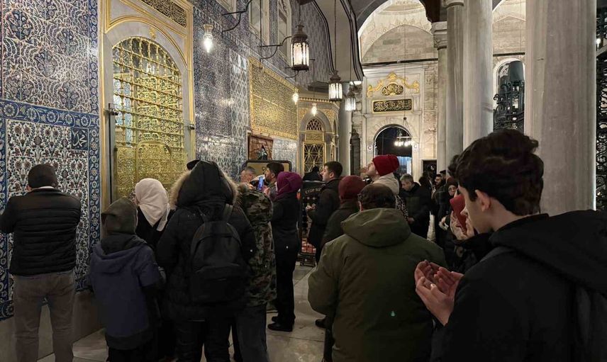 Vatandaşlar camide kıldıkları namazların ardından Eyüp Sultan Hazretleri’nin türbesini ziyaret etti. Akşam namazı sonrasında camide topluca dualar yapıldı.