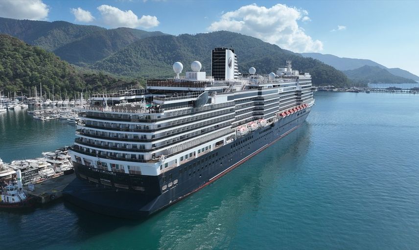 Hollanda bayraklı MS Nieuw Statendam kruvaziyeri, 2 bin 594 yolcusuyla Muğla'nın Marmaris ilçesine demirledi. Yolcu gemisi, Mikonos Limanı'nın ardından rotasını Marmaris'e çevirdi.