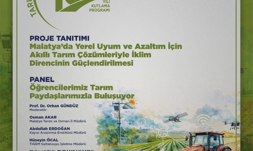 Programa MTÜ Ziraat Fakültesi ev sahipliği yapıyor. Etkinlik kapsamında öğrenciler ile Malatya'daki tarım paydaşları bir araya gelecek; ayrıca Malatya’da Yerel Uyum ve Azaltım İçin Akıllı Tarım Çözümleriyle İklim Direncinin Güçlendirilmesi adlı projenin tanıtımı yapılacak. Tanıtımın ardından öğrenciler ile tarım paydaşlarını buluşturan bir panel düzenlenecek.