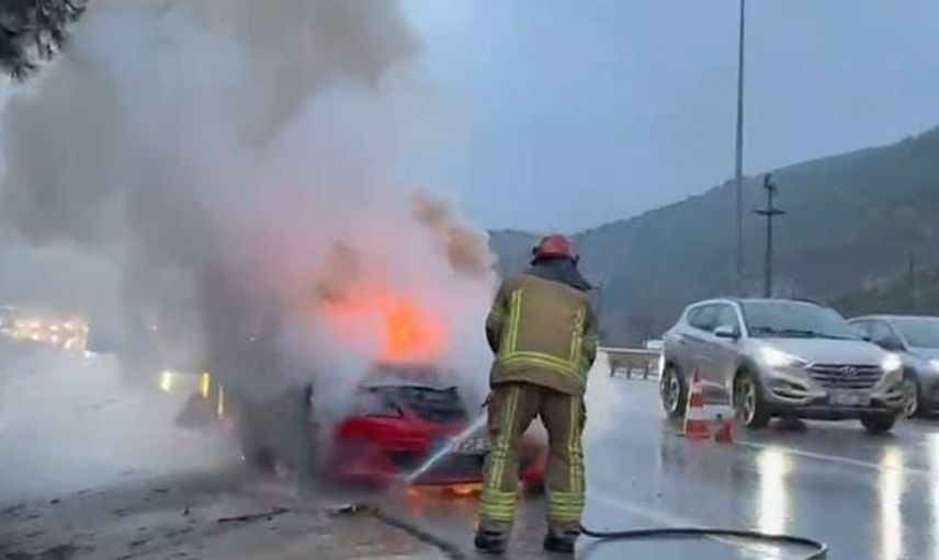 Mudanya Yolu üzerinde, Mudanya istikametinden Bursa yönüne seyir hâlindeyken motor arızası yaşayan bir otomobil, sürücünün aracı sağa çekip durdurmasının ardından kısa sürede alevlere teslim oldu.