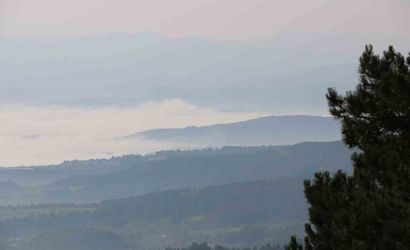 Abant Gölü Milli Parkı'nın yüksek kesimlerinden ilçeye bakıldığında, sisin arasından yükselen dağlar adeta kartpostallık manzaralar sundu.