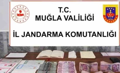 Muğla İl Jandarma Komutanlığı ekipleri tarafından gerçekleştirilen operasyonda, suçtan elde edildiği değerlendirilen yüklü miktarda nakit para ile rakamları yazılı dolu senetler, boş senetler ve bir alacak defteri ele geçirildi.