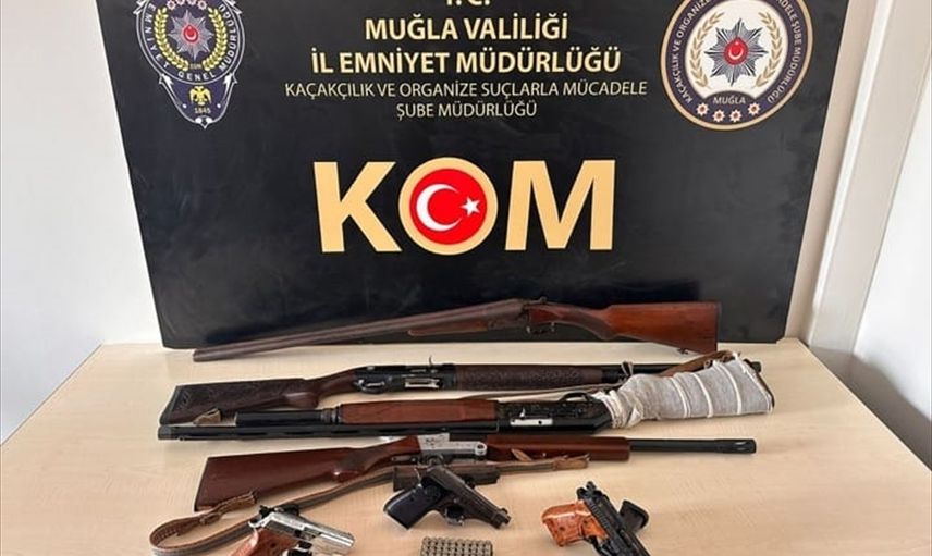 Muğla'da silah kaçakçılarına yönelik operasyonda gözaltına alınan 13 şüpheliden 4'ü tutuklandı. Farklı ilçelerde belirlenen 13 adreste yapılan aramalarda 3 ruhsatsız, 2 kurusıkıdan bozma ve 5 kurusıkı tabanca, bir tabanca gövdesi, 12 ruhsatsız av tüfeği, 2 havalı tüfek, 212 tabanca fişeği, 283 av tüfeği kartuşu, bir kılıç, bir işlemeli çelik bıçak ve 4 şarjör ele geçirildi.