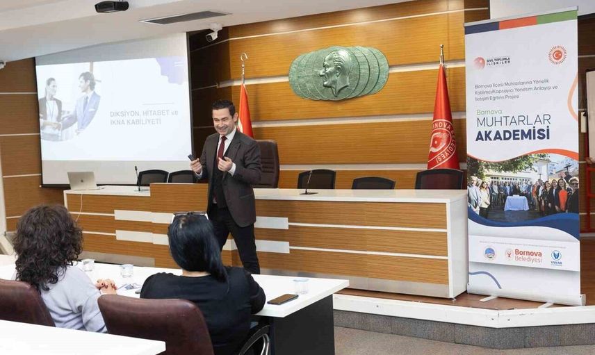 Uygulamalı eğitim örneği: Muhtarlar Akademisi’nin ilk eğitimini Yaşar Üniversitesi Halkla İlişkiler Tanıtım Pazarlama Şefi Turgut Onarır verdi. "Diksiyon, Hitabet ve İkna Kabiliyeti" başlıklı oturumda katılımcılar sesin doğru kullanımı, nefes kontrolü, vurgu ve tonlama tekniklerini uygulamalı olarak deneyimledi ve telaffuz becerilerini geliştirdi.