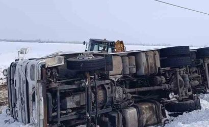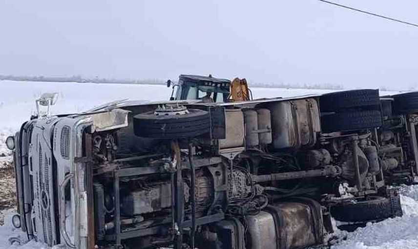 Van'ın Muradiye ilçesinde gizli buzlanma nedeniyle bir tırın devrildiği öğrenildi. Kaza, Van-Muradiye kara yolu üzerindeki Köşk Mahallesi yakınlarında meydana geldi.