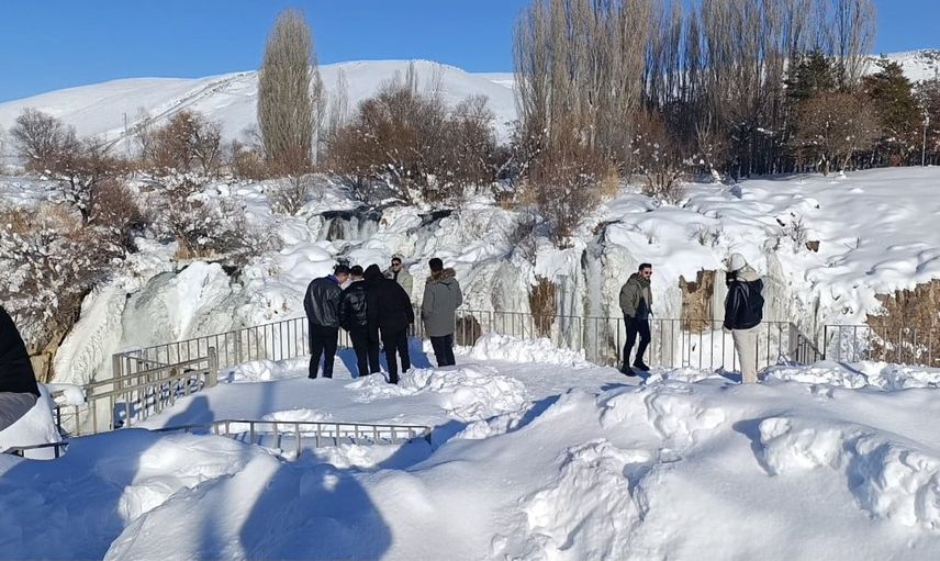 Ziyaretçiler, soğuk havanın etkisiyle şelalenin büyük kısmının donduğunu belirterek ortaya çıkan manzaranın büyüleyici olduğunu söyledi. Bölgeye gelenler eşsiz kareler yakalarken herkesi buz tutan Muradiye Şelalesi’ni görmeye davet etti.