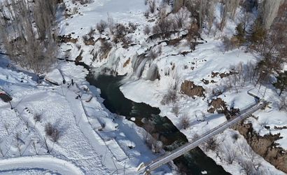 Muradiye Şelalesi kışın beyaz örtüsünü giydi