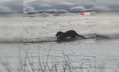 AĞRI’NIN TAŞLIÇAY İLÇESİNDE, MURAT NEHRİ’NDE YİYECEK ARARKEN GÖRÜNTÜLENEN İKİ SU SAMURU, BÖLGEDE BÜYÜK HEYECAN YARATTI. DAHA ÖNCE BU BÖLGEDE GÖRÜLMEYEN SU SAMURLARI, DOĞASEVERLERİ VE VATANDAŞLARI ŞAŞKINA ÇEVİRDİ.
