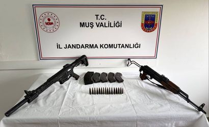 MUŞ’TA BİR EVE SİLAHLA ATEŞ AÇILMASI ÜZERİNE BAŞLATILAN JANDARMA OPERASYONUNDA İKİ ŞÜPHELİ YAKALANIRKEN, YAPILAN ARAMALARDA OTOMATİK AV TÜFEĞİ, AK-47 VE ÇOK SAYIDA FİŞEK ELE GEÇİRİLDİ.